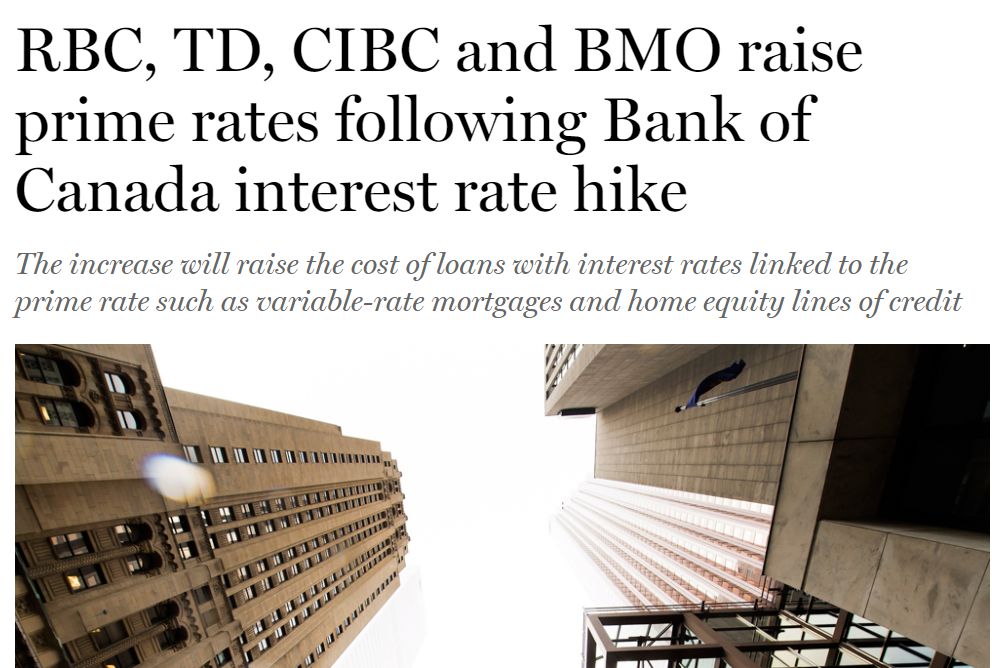 | 金融动态 首页 > 新闻中心 > 金融动态 >【房市热议】加拿大央行宣布加息 基准利率升至1.75% 加币暴涨 房奴哭晕 |