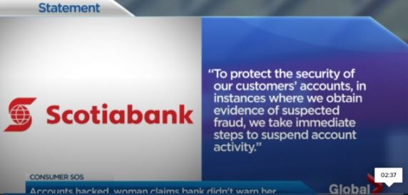 据环球新闻网(Global News)报道,多伦多东面奥沙华(Oshawa)居民莎琳(Charlene Bourne)曾担任过高级银行监理和律师助理,想不到自己也有一天被银行坑了,其账户被转走数千元,信用卡也被刷爆,银行方面事前明明知道她的账户有明显异动,不仅没有通知并提醒她,反而将其账户一关了之。 信用卡被盗刷数万元 莎琳对环球新闻表示,今年9月下旬她购物之后用丰业银行(Scotiabank )的银行卡付账时,发现自己的帐户被冻结了。接踵而来的事情更让她心惊肉跳:当她找丰业银行查问时,赫然发现账户内有$3,000元被转走,多张信用卡被刷走数万元,其中一张信用卡正是丰业银行的卡。 发现问题之后她便到银行查询,而银行职员给她的帐户记录显示,早在8月份,银行方面怀疑她的帐户涉嫌欺诈,于是做了相关记载,并将其账户关闭。 有人盗用她的名字开了新卡 在与银行职员的接触中,对方承认: 早在6周前即8月4日,就发现有人在网上进入她的帐户,用她的名字开了一张新卡。此人或一帮人修改地址之后,这张卡被送到蒙特利尔的一个地址。