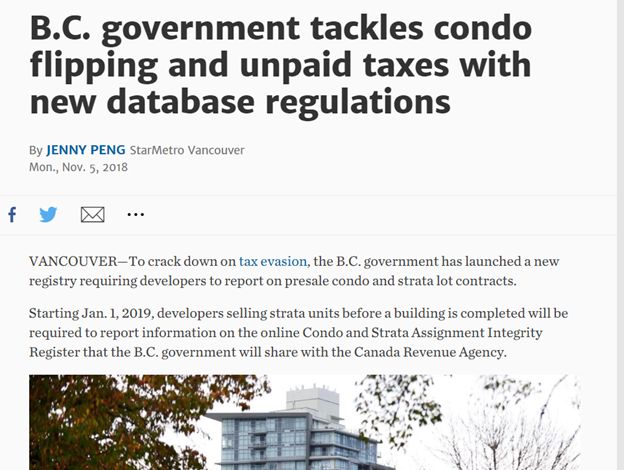 或许去年的情况能说明税局现在为何如此“狠心”——税局最近的一份报告显示,经过审查过去三年的成交情况,查出卑诗省和安省的房地产有近6亿元的未缴税款。 在卑诗省,有45%的未缴税款都是因为没有正确地报税。 省府的新规定还包括,从明年(2019)1月1日起,楼花发展商必须在合约上增加条款,提醒买家所有的买卖资料将被纳入该项系统。