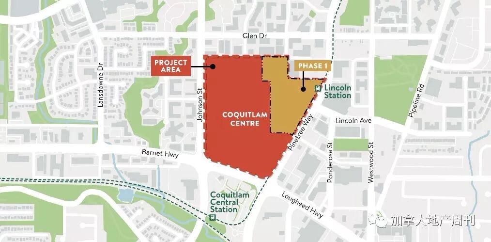 在大温地区各项重建工作都在如火如荼的进行时,两项针对高贵林的改建方案也在悄然的进行当中。 重建高贵林中心 重建过后的高贵林中心,将会成为一个巨大的多用途商区,更可以和Brentwood(布伦特伍德),Oakridge(渥烈治),Lougheed(洛歇城)等大型中心媲美。 这片占地60英亩的购物中心属于Pension Fund Realty公司,他们与总部位于密西沙加的Morguard Investments合作,并且在最近公布了他们初步的概念性重建计划。 Pension Fund地产公司最近开始向公众征求意见,主要目的是为了完成2019年春季的总体规划概念。 他们将在明年夏天将正式的社区计划修订案和城市重新分区的第一阶段申请提交给高贵林市府。 重建的第一阶段将占地16英亩,位于整个规划区域的东北角,临近SkyTrain的林肯站(Lincoln Station),也是目前没有被利用的Sears(西尔斯)大楼和地面停车场的位置。 这片区域将根据市场的需求进行重建,但目前还不知道完工的具体时间。 新的高贵林中心,将以交通为导向进行多模式开发。新的街道网、行人和自行车相关的基础设施建设,以及交通稳静化的设计理念等,都将使城市中心成为一个核心目的地,而不仅仅是人们路过的一个地点。