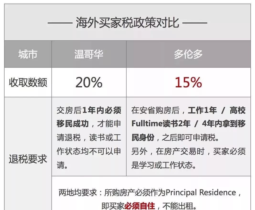 其实,海外买家税不是安省发明的,比较起来,咱们这里的海外买家税也不算“杀伤力”最大的!跟咱们多伦多比起来,温哥华的海外买家税的政策才算得上是真正的惊悚! 如果朋友们想更详细地了解温哥华和多伦多的地产市场的不同点,以及两座城市人文、教育等的各方各面的差别。 书归正传,对于房市而言,海外买家税它的名号颇为“恐怖”,在各方各面都造成了深远影响。对于想在加国落脚,或者是有长期的投资置业规划的买家朋友们来说,它其实没那么容易给各位造成实质性的损失。 为什么这样说呢?因为这项税款,是可以被申请退回的!