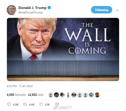 政府停摆进入第三周, 数十万联邦员工被迫停职, 国家几近紧急状态, 这次,美国总统特朗普铁了心要在美墨边境建起一座边境墙! 据路透社报道,1月6日,特朗普坚持立誓对美墨边境墙的要求绝不退缩。 在当晚行政管理和预算局给国会议员的信中,特朗普表示,需要 57 亿美元修这道钢铁屏障。而此前,特朗普一直想要建的混凝土墙需要 56 亿美元预算。 对此,他得意的表示,我们必须要建一堵墙,既然民主党不 喜欢混凝土墙,那就换一种 —— 钢铁墙,还更贵哦~ emmm…… 难怪,民主党没人愿意答应这个小老头的决定,这脑回路…… 据悉,特朗普从竞选总统开始就把建墙挂在嘴边,但直到如今,上任两年,依旧没有钱给他建墙。 这个小老头仿佛跟墙磕上一样,两度停摆联邦政府。 而这次,政府已经关门16天,数十万联邦员工被迫暂停工作…… 据《华尔街日报》报道, 特朗普在离开白宫前往戴维营与顾问们开会时,对记者表示,这个墙如果不是混凝土还可以是钢的哟!我们要建钢铁墙!!! 这是想要像钢铁侠学习么??? 而且他称已在计划“打电话给美国钢铁公司(United States Steel)和其他几家钢铁公司的负责人,让他们拿出一个钢板或设计方案。” 除外,特朗普还放出“狠话”,如果事情还在僵持,“我可能会根据未来几天的情况来决定国家是否进入紧急状态。” 6 日傍晚,特朗普在推特上再次确认了钢铁“墙”的消息,他表示副总统彭斯和众议院议长佩洛西、参议院少数党领袖舒默的代表们也在 6 日进行了一次“富有成效的会议”,讨论了“边境安全的许多细节”。 没想到的是,推特一发。 建墙的僵局还没结局,特朗普先迎来了一份打脸套餐。 一名熟悉会议的民主党官员反驳了特朗普对会谈的描述,称“没有取得任何进展”! 双方仍在继续僵持。 面对特朗普的强势施压,民主党估计也不好过啊…… 回头看看,特朗普在推特上发布的“墙将至(The Wall is Coming)”的海报。 这张海报再次借用了《权利的游戏》“凛冬将至”的梗。 emmm……真的没有人告诉他权游里面的墙最后都塌了的事吗? 不得不说, 老特,没事少发段子 难道你没发现,网友只关注了你的段子 下次过节还是没人关心你是否一个人过…… 再说了,美墨边境建了墙,那难民岂不是全跑加拿大了。 文章来源:约克论坛 如涉及侵权请联系我们删除 文章仅代表作者观点 专业建议请咨询专业人士 想要咨询更多关于换汇,投资,私人银行等信息,欢迎联系我们。 中国免费直播号:950-405-98572 |