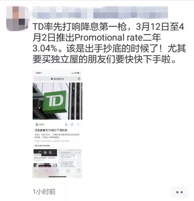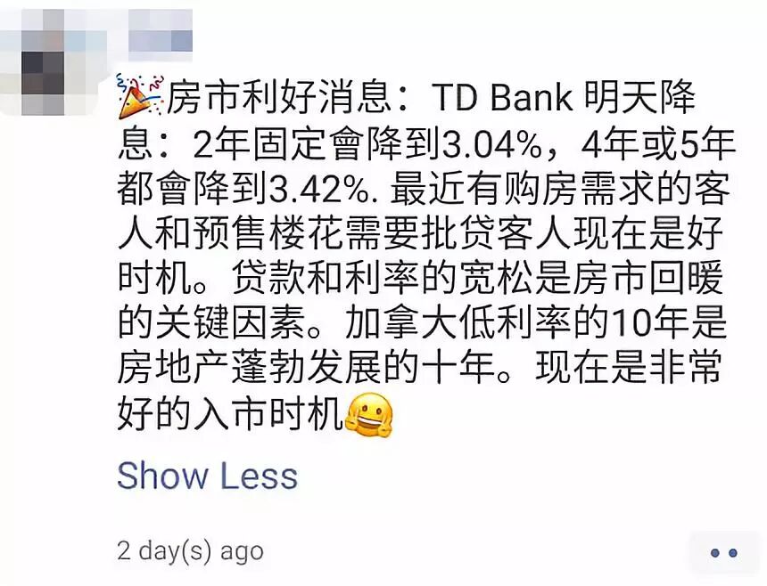 这两天的朋友圈,被一条TD Bank(加拿大道明银行)宣布降息的消息刷屏了: 固定贷款利率最低至3.04%! 其中,2年期25年还固定贷款利率为3.04%,2年期30年还固定贷款利率为3.14%。 另外,4年或5年的利率也会降到3.42%! 要知道,此前的2年和4年固定利率,已经涨到3.74%和3.94%了!就算是两周前的优惠活动,利率也还要3.29%。 图自TD官网Mortgage Rates 但是值得注意的是,这次降息只是一个短暂的优惠活动,时间从3月12日开始至4月2日结束,只有22天。 正有买房打算的朋友可以说是相当幸运了,只要在这22天内,提交姓名、电话、房价、贷款额度等相关信息,就可以将现在的优惠利率锁定120天。 不仅仅是买家,对于准备续约的业主们来说也是非常幸福啦! 即使还没到续约时间,也可以在允许的时间范围内提前续约,具体的可以联系自己的贷款经纪咨询~ TD打响救市第一枪 从2017年到现在,联邦政府5度调高利息,利率从0.5%一路涨到了1.75%,贷款50万的屋主每年需要额外多交6000多块利息。 同时还有严格的贷款压力测试和各项税费的施压,业主和买家们可以说是苦不堪言。 大温和加拿大全国的房市惨淡,就是各项政策最明显的体现。 3月6日,加拿大央行宣布基准利率维持在1.75%不变,并表示未来加息的可能性暂不确定。 央行在最新的声明中表示,2017年经济增长率为3%,2018年经济增长率为1.8%,可见全球经济增长放缓,尤其是比2019年1月预期的更加明显。 另外,据加拿大统计局的最新国内生产总值显示,2018年第四季度加拿大经济几乎停滞不前,房地产市场不再火爆,出口和商业投资市场变冷,石油出口价值暴跌21%,创下贸易逆差纪录。 央行宣布不加息的结果,也没有挽救加币对人民币汇率的断崖式下跌,并且突破1:5大关,降到了4.99。 这一次TD推出降息活动,在希望吸引更多的客户的同时,也代表了银行对加拿大经济的预期和展望。 今年1月16日,RBC就推出过一项优惠政策,将5年期固定贷款利率从3.89%下调至3.74%。 就在发稿前,朋友圈又出现了BMO跟进的最新信息:高净值房贷,首付可低至20%,资产与贷款1:1,信用分700以上,自己存款。最重要的是:不看收入!!! 不过此消息还未经过官方证实,感兴趣的朋友们可以向银行进一步咨询。 下一次央行将于4月24日宣布是否加息,如果维持不变或是降息,那么更多银行跟进优惠政策,看来只是时间的问题了。 文章来源:加拿大地产周刊 本文仅供参考不构成任何投资及专业建议 如涉及侵权请联系我们删除 想要咨询更多关于换汇,投资,私人银行等信息,欢迎联系我们。 中国免费直播号:950-405-98572 |