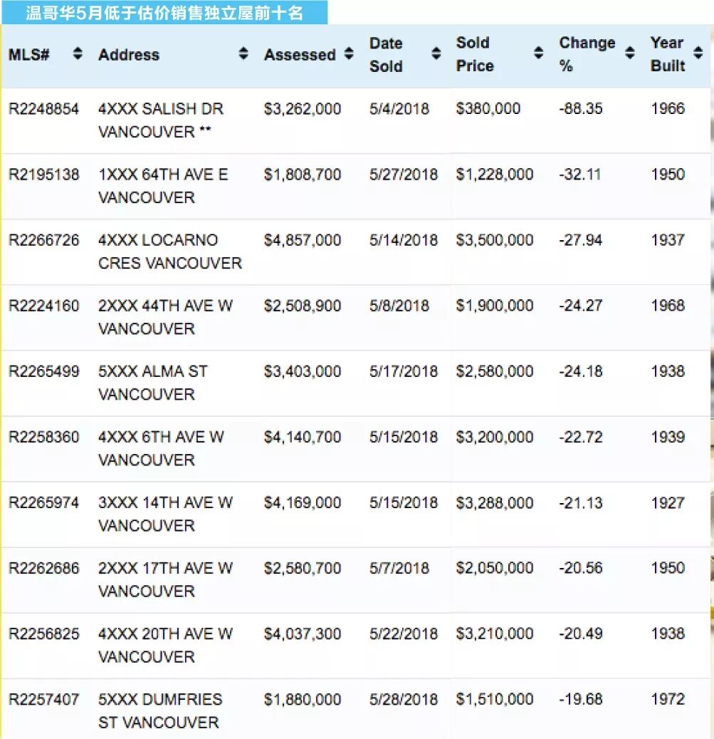 受到新的贷款压力测试、利率上涨以及政府对地产市场税收政策等影响。今年以来加拿大房市一直处于冷却的状态,全国多个地区的房屋销量都出现下跌。 大温地产局(REBGV)和多伦多地产局(TREB)的5月数据显示,两地5月房屋销量和一年前相比分别下滑35%和22%。网络传媒ThinkPol也报道,温哥华5月售出的独立屋中有超过半数都是低于估价出售,还有的低于估价幅度达到32%。 虽然独立屋市场一片哀嚎,但楼花市场和度假屋市场则逆势上涨。 住宅地产服务公司MLACanada的新报告显示,5月大温及菲沙河谷地区的预售房屋增加数量几乎是4月的两倍,销售比例高达70%。 另外皇家地产公司(Royal LePage)的最新调查也预测,今年夏天度假屋市场将持续火爆,销量和房价均可能双双升高。 独立屋市场连续4个月低迷 温哥华多数独立屋低于估价出售 去年开始,网络传媒ThinkPol就持续报道,目前大温独立屋市场冷却,很多独立屋赔本出售,还有的售价低于评估价。 Thinkpol的5月数据显示,截至到6月1日,温哥华多重销售系统(MLS)售出的139间独立屋住宅中,有84间的销售价格低于其2017年的评估价值,比例为60%,这也已经是连续第4个月温哥华多数独立屋的售价低于估计。 上面表格中有一栋房子政府估价为$326万: 但是竟然Listing的价钱仅仅是1/5的$499,000,最后卖出价格为$380,000;令人不禁叹息,可能是屋主有急事甩卖,竟然低于估价88%卖出。 5月降幅最大的是温东地区一间1966年建造的租赁产权(leasehold properties)房屋,今年5月4日成交时的售价比估价下降了88.35%,但Thinkpol指出这个降幅对租赁产权物业来说并不稀奇。 其次是Victoria-Fraserview地区的一栋房屋,今年的评估价为180万8700元,而不久前的售价只有122万8000元,低于估价32.11%。 很多售价低于估价较多的房屋都是房龄比较久的老旧独立屋,新建独立屋则呈现房价上涨趋势。5月涨幅最大的是Cambie地区的房屋,上涨了49.73%,这与甘比走廊(CambieCorridor)的开发计划有关。 4月涨幅最大的一栋房子位于MarineDrive,也是因为政府的重新规划,政府指定该区域在Marpole社区发展计划中为高密度重新规划区,售价几乎是评估价的2倍。 大温楼花市场火爆 5月售出比例达70% 和独立屋的惨市不同,预售公寓市场则一片红火。业内人士认为,虽然今年第一季度大温地区和菲沙河谷地区楼花市场出现放缓迹象,但进入夏天,楼花买家们将回归市场,楼花销量预计将开始增加。 根据住宅地产服务公司MLA Canada的新报告,5月份大温及菲沙河谷地区共发售1560个预售房屋,几乎是4月份的两倍,而且其中的70%在5月就已经被销售掉,有6个楼盘售出比例甚至超过90%,远高于4月的比例43%。 “ MLA Canada的首席顾问Suzana Goncalves表示,今年第一季楼花市场在市场的不确定性和政府干预下,交易速度放缓,但是5月新发售的楼花数量增加,新项目的销售比例超过70%,说明市场情况已经发生转变。 ” 从房屋类型上看,今年预售城市屋的销售很强劲。今年1至5月,大温及菲沙河谷总共推出1100个新的预售城市屋项目,其中有430个单位(38%)位于大温地区,有771个单位(62%)位于菲沙河谷区。 从购买比例来看,大温在新的城市屋的消费率为57%(243/430),而菲沙河谷的势头更为强劲,消费率为74%(529/711),这与菲沙河谷区买家整体购买实力正在增加有关。另外很多新发售的预售项目也都位于菲沙河谷地区,显示当地的消费者也显著增加。 MLA预计今年6月将会有17个预售项目在大温及菲沙河谷启动,将为市场提供1335个新的楼花单位,其中有超过280个单位的城市屋会集中在菲沙河谷地区,有超过704个单位在高贵林和满地堡。 在新预售的项目当中,包括木质结构公寓210间、混凝土公寓844间,以及城市屋281间。大温地区则占据了现有库存的大部分,比例高达90%。 全国度假屋市场逆势上涨 卑诗度假屋短期受投机税影响 皇家地产公司(Royal LePage)的最新调查预计,今年夏天度假屋市场将继续兴旺,房屋销量和房价可能双双升高。 根据Royal LePage的报告,预计到今年9月份,加拿大休闲度假屋的平均价格会上涨5.8%,即从去年夏季的44万2239元涨到46万7764元。 推动度假屋价格上涨的两大买家群分别为进入退休年龄的婴儿潮一代,以及年龄在36-51岁的所谓X一代(Gen-Xers)。前者主要是为了购买退休屋,而后者正处于鼎盛时期,他们希望买第二套物业养孩子。 “ Royal LePage的总裁 Phil Soper表示,目前加拿大大型地产市场的房价和销量都有所下滑,但多数区域的度假物业需求则仍很旺盛,受到本国强劲经济的驱使,度假屋市场今年将发展良好。喂马, 劈柴, 周游世界。从明天起, 关心粮食和蔬菜,我有一所房子, 面朝大海, 春暖花开 ” 就在Royal LePage发布最新报告之前,大温地产局和多伦多地产局刚刚发布了5月的销售数据,大温5月房屋销量比去年同期大约下跌35%,大多伦多地区房屋销量则比一年前下滑22%。不过受调查的42%的业内人士都认为,和去年相比,今年度假季节结束后度假物业销量将有所增长。 但也不是所有地区的度假屋房价都将有大幅上涨。如果从省份来看,安省的涨幅最大,高达9.4%,均价将涨至53万5885元;其次为阿尔伯塔省,涨幅也将达到8.2%,均价涨至77万100元。 大西洋省份度假屋的价格有所下跌,跌幅超过8%,均价会跌至22万8754元。报告分析说,从全国来看,大西洋省份本来房屋负担就较轻,房价也不高,因此不少买家出低价买旧屋然后推倒重建自己的梦想房屋,让该地区的度