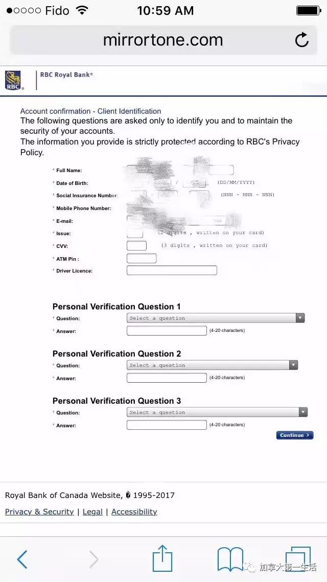 这网站乍一看,完全就是RBC的网站没错,但是你要我这么多个人信息,什么社保号、驾照号、银行卡密码、银行卡CVV blah blah,我开户的时候银行都没问过啊!