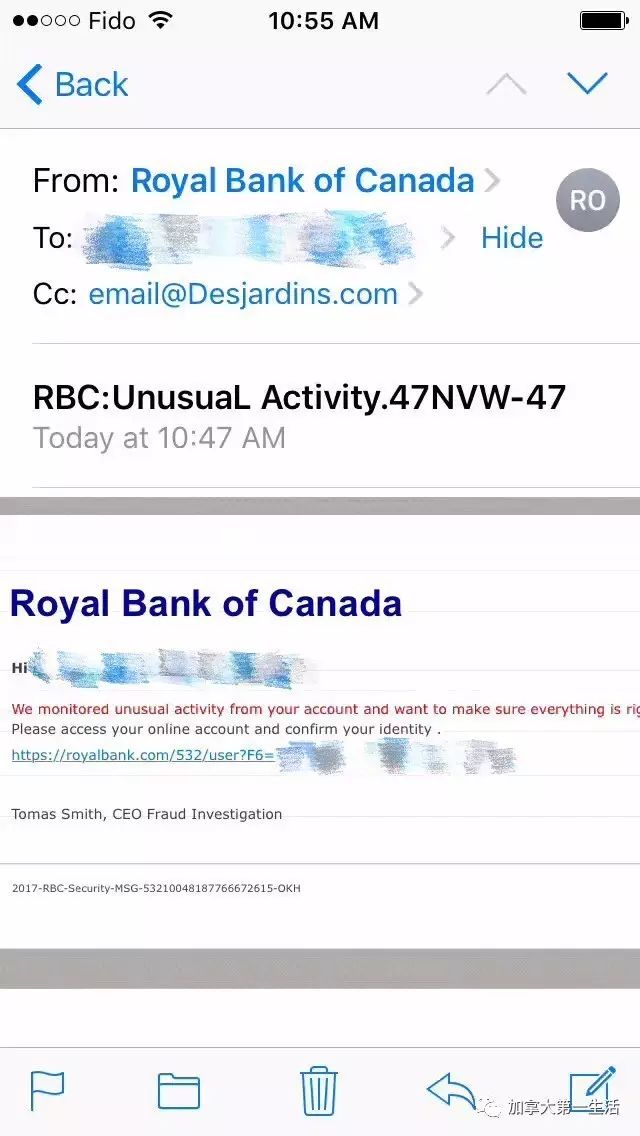 一看是RBC发过来的,主题又是和银行密码有关,小编赶紧点开看看: