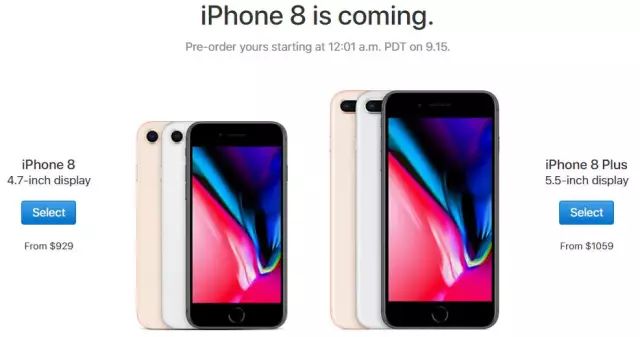 Iphone8和8plus将会在9月15日开放订购,9月23日发货。价格从929起,plus1029起;