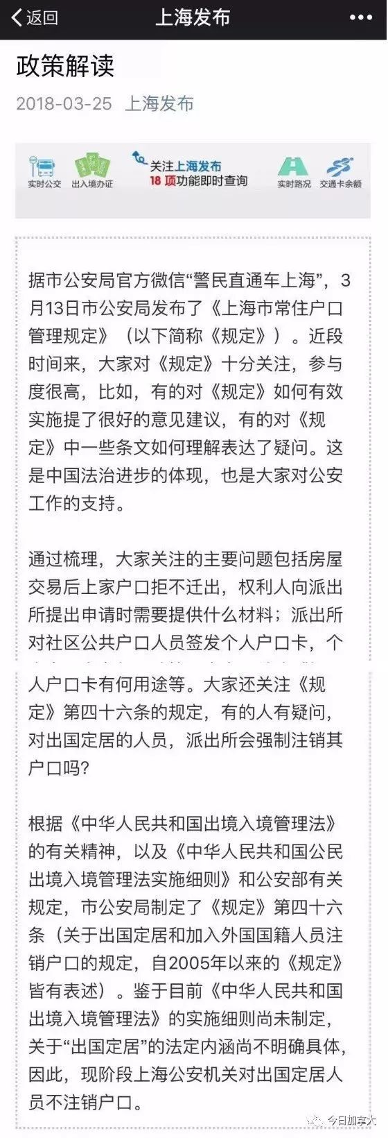 本次上海发布,深夜发文引来了海内外众多华人的关注,这一下我们可以放心了,文中明确说明:对于出国定居人员不注销户口! 本次户籍注销风波终于可以圆满画上句号了。
