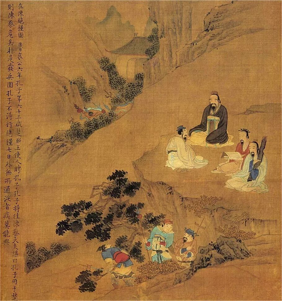 孔子生活的年代,天下大乱,中央政权式微,五霸之类诸侯国家纵横捭阖、血腥争斗。孔子逆潮流而动,意欲挽狂澜于既倒。他的理念是斯文救世:用仁德代替凶恶,用仁政代替暴政,用博大仁爱之心代替狭隘争拗之心,用善良坦荡温文尔雅之貌取代邪恶忤逆野蛮诡诈乱相。 公元前517年,鲁国内乱,孔子离鲁至齐,在齐不得志,又回到鲁。在鲁国,其仕途经过一番波折之后,仍难以施展政治抱负。于是,他带颜回、子路、子贡、冉有等十余弟子离开“父母之邦”,开始了长达十四年之久的周游列国的颠沛流离生涯。当时,孔子已五十五岁。 修“六经”留《论语》