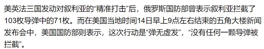 美军为了避免同俄军互相伤害,还特意通知俄军撤离 结果没想到叙利亚官兵也跟着逃走了…… 于是这次在2018的袭击中,美军就没有再通知俄军 这也让俄方强烈抗议,直称这是对“俄罗斯总统普丁的直接侮辱…所有后果你们自行负责”。 2 到底是弹无虚发,还是被成功拦截? 当地时间14日上午的新闻发布会 图自波士顿环球报 另外,此前叙利亚军方指出,美英法此次联合打击造成至少6名叙利亚平民受伤。而美国国防部的官员则表示,“目前还没有收到任何人员伤亡的消息”。 俄罗斯卫星通讯社:俄国防部称叙利亚拦截71枚导弹 与怀特所谓“弹无虚发”的言论大相径庭,俄罗斯方面称“美英法导弹打击的叙利亚机场未毫发无损”。 俄武装力量总参作战总局局长鲁茨科伊在新闻发布会上对记者称:"打击目标包括叙, 空军航空基地。客观观察的数据如下。4枚导弹袭击杜瓦利机场——全部被击落。12枚打杜美尔机场,全被击落。布雷机场18枚,全被击落。沙伊拉特机场12枚,全被击落。机场均未受损。" 而美国联合参谋部主任麦肯锡(Kenneth McKenzie)对俄罗斯的数据存疑:“发动打击时的那天,美国并没有发现叙利亚周边有俄罗斯防空体系的存在。” 除此之外,俄罗斯方面还表示:我们被威胁了,我们警告,这样的行动不会没有后果,所有的责任归于华盛顿、伦敦和巴黎! 俄罗斯外长公开发文表示:“华盛顿、伦敦和巴黎必须负起全责。侮辱俄罗斯总统的做法是无法被接受的行动。美国拥有全球最多的化学武器,没有道德权力责怪其他国家。” 是的,正如俄罗斯外长所说的,普京在全世界面前被公开羞辱,想必美英法领导人也准备好了要承受严重的后果。 3 美国此举,小弟加拿大又要傻眼了! 据加拿大统计局消息,早在2016年,已有大量叙利亚难民涌入加拿大。 转眼即至2018年,国际形势变幻风云,头脑简单、内心善良的加拿大,除了更改难民配额外,应该做不出别的创举了。 7年多旷日持久的连绵战火,让叙利亚城市满目疮痍,古迹摧毁殆尽,百姓流离失所…… 这次美国空袭叙利亚,这片本已伤痕累累的土地再次经历打击。 我们并不是出生在和平年代,只是生长在相对和平安全的国家。 在庆幸自己的幸运时,也愿世界和平,再无战争! 最后附上一波叙利亚战前战后的对比图,希望这片土地和无辜的人民不要再受伤害。 (图片来源:微天下) 信息来源:加拿大乐活网 如涉及侵权请联系我们删除 想要咨询更多关于换汇,投资,私人银行等信息,欢迎联系我们。 中国免费直播号:950-405-98572 |