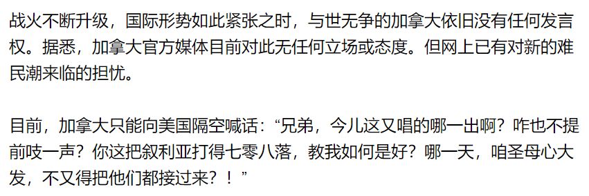 川普脸打得啪啪响,美国炮轰叙利亚!加拿大又傻眼,难民配额又要...