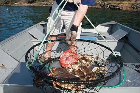 基本不需要任何技术或者经验, 只要有盐水钓鱼牌照(tidal water fishing license)就可以了。 你可以钓这种螃蟹: 1. 黄金蟹(又名温哥华蟹) 颜色显浅棕色 可捕捉的最小宽度是165毫米 还可以钓这种: 红黄道蟹(Red Rock Crab) 颜色红或者深红色 最小可捕捉宽度为115毫米 还有这种: 不过要注意 所有雌性的螃蟹都是一律不可捕捉的 如果抓到小于规定身宽或者雌性的螃蟹都要立即放生 钓螃蟹的方法: 1. 可以直接游进海里拿,用小型鱼网(捞金鱼的那种,不是商业渔船用的大网)捞 2. 两种用蟹笼钓的方法:一,是在码头放蟹笼进海里钓;二,是开船出海,放蟹笼在海中间钓。 在码头用蟹笼钓螃蟹的方法,注意绳子要绑紧在码头 在海里用蟹笼钓螃蟹的方法,漂浮物是用来把绳子浮在水面上: 需要买的器材: 装螃蟹的器皿, 一般带盖子的水桶就可以了,或者用报纸把螃蟹包起来带回家。 诱饵袋,这个是拿来装螃蟹的诱饵然后放在蟹笼里的。一般分袋子或者小铁笼两种。 诱饵,一般超市买的鱼头或者新鲜的鸡腿。 夹子,不会徒手抓螃蟹的才需要夹子。 手套,可有可无,作用是防止被刺伤。 漂浮物,只有出海钓螃蟹的同学们才需要。 最后就是蟹笼了,蟹笼有分很多种,下面是蟹笼的种类: Ring Net:是所有蟹笼当中最便宜($10左右),也是最简易的。就是抛下去等几分钟,然后拿上来。 Star Trap(也叫Pyramid Trap),虽然价钱也很便宜但是不好用,如果关得不好的话可能螃蟹可以从旁边逃走。这种蟹笼在Canadian Tire有卖所以会比较常见。 Semi-circle Trap, 价钱便宜而且轻巧,可以扔很远,覆盖更多的海域。不好的是它跟Ring Net和Star Trap一样要经常检查,不然螃蟹可能会吃完就跑。 最后一种,Crab Cage(也称Crab Pot) 也是最推荐的!这种蟹笼(价钱从$20-$100+)好处是可以一次捕捉很多只螃蟹,也不需要经常检查,因为螃蟹进去了就出不来了。 蟹笼推荐去,Canadian Tire和Walmart之类的地方买,或者专业捕鱼商店Steveston Marine & Hardware 水桶,量尺,手套,夹子之类的哪里都可以买得到,所以超市,一元店之类的都可以。 钓螃蟹的规章制度: 首先,一定要有盐水钓鱼牌照(tidal water fishing license),购买官网:http://www.pac.dfo-mpo.gc.ca/fm-gp/rec/licence-permis/index-eng.htm#Tidal_Licensing 必须遵守的规章(违者可能会遭到巨额罚款)简约版